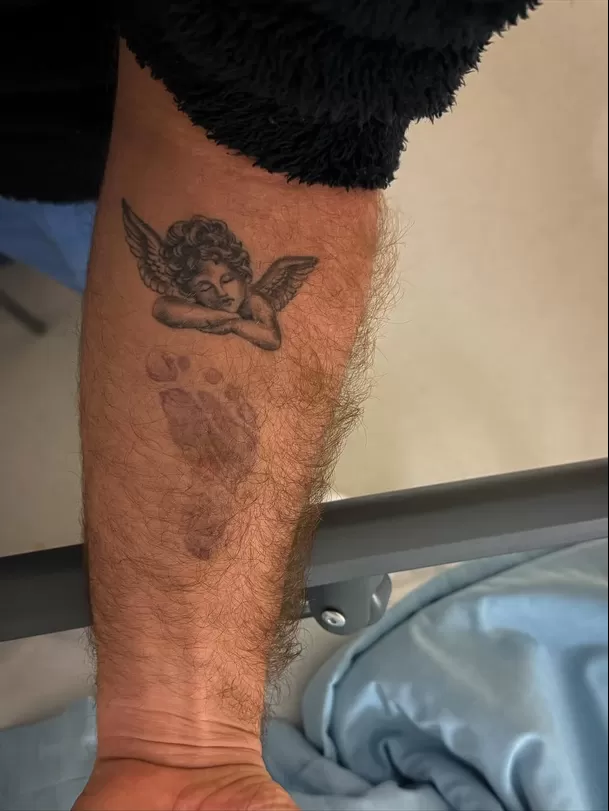 Asimismo, Miguel compartió una fotografía especial, en la que muestra un ángel tatuado en su brazo, y es que meses atrás la pareja pasó por un momento doloroso al sufrir la pérdida de un bebé.